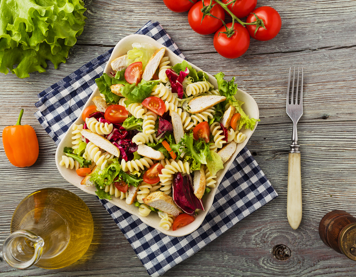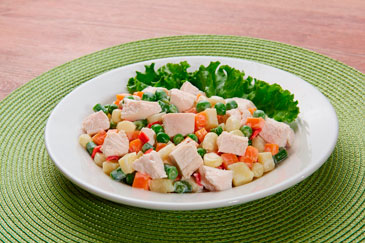 En un bol mezclar los fideos, el choclo, la vainita y el Pollo Redondos en tiras