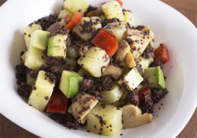 En un bowl agrega las papas cortadas y sancochadas, los champiñones salteados, los pimientos y la Sangrecita Redondos, la palta en cubos, sazona con sal y pimienta, agrega la mayonesa y revuelve bien.